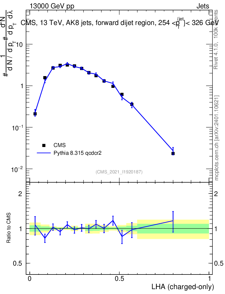 Lines: data, pythia8 8.315 qcdcr2 |