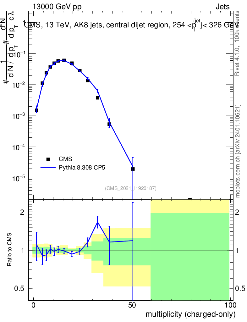 Lines: data, pythia8 8.308 CP5 |