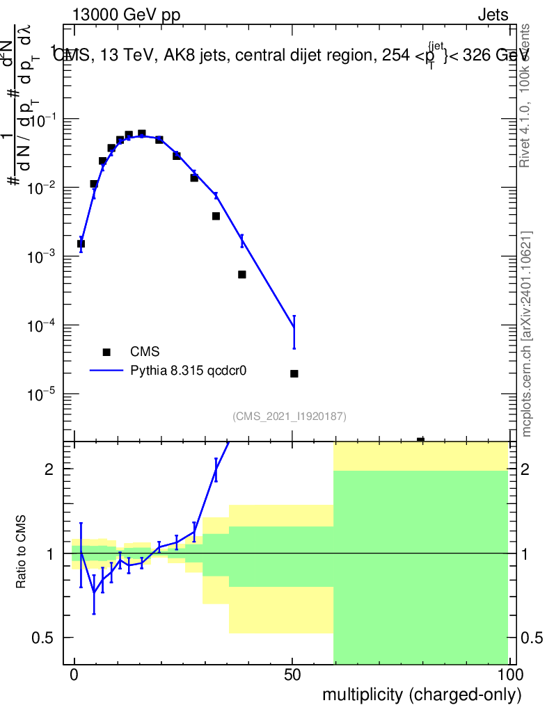 Lines: data, pythia8 8.315 qcdcr0 |