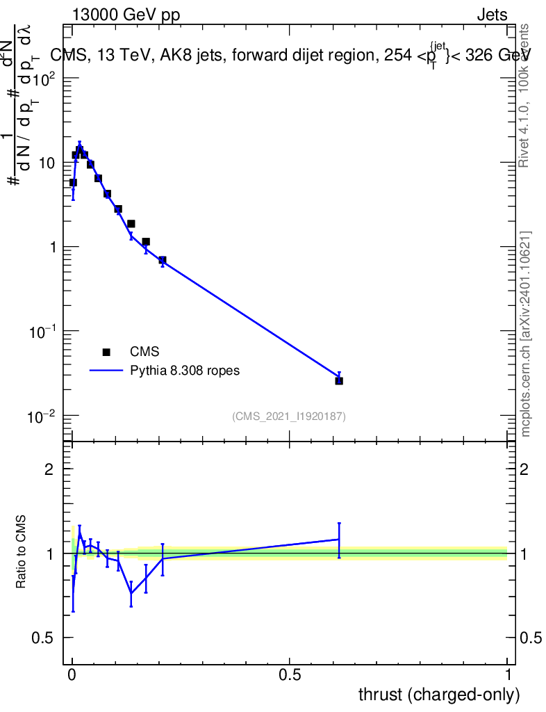 Lines: data, pythia8 8.308 ropes |