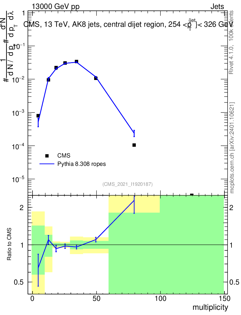 Lines: data, pythia8 8.308 ropes |