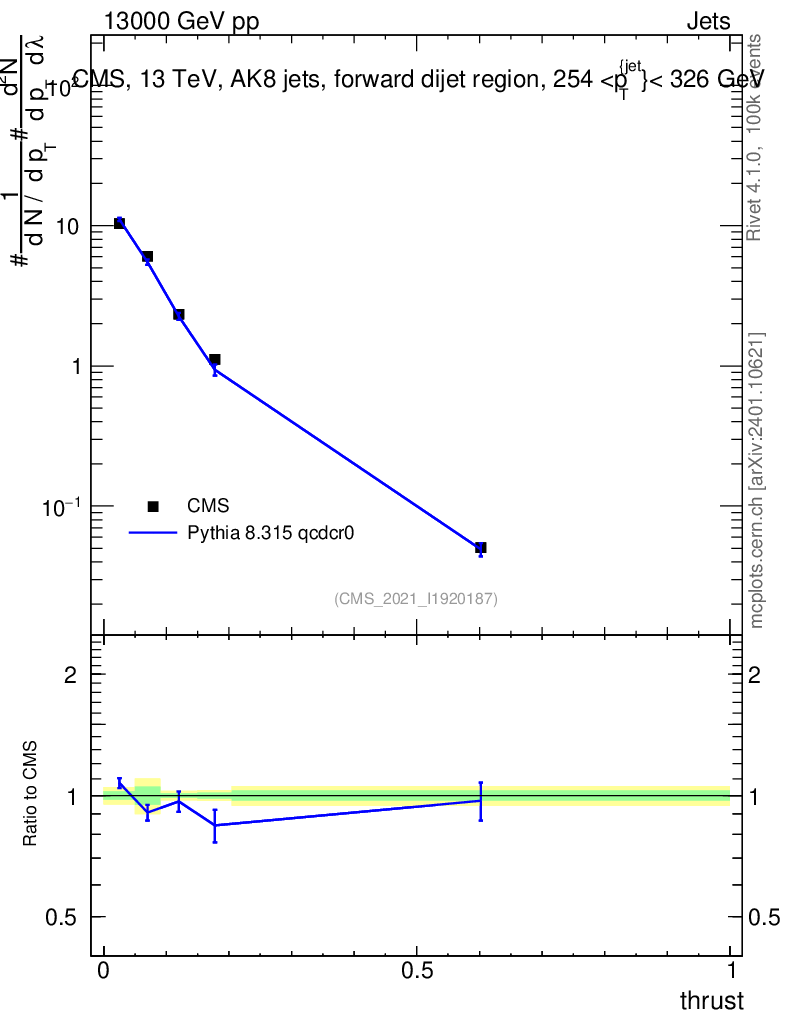 Lines: data, pythia8 8.315 qcdcr0 |