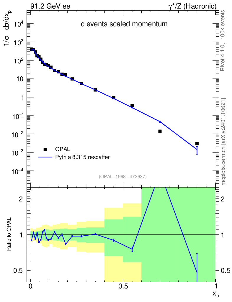 Lines: data, pythia8 8.315 rescatter |