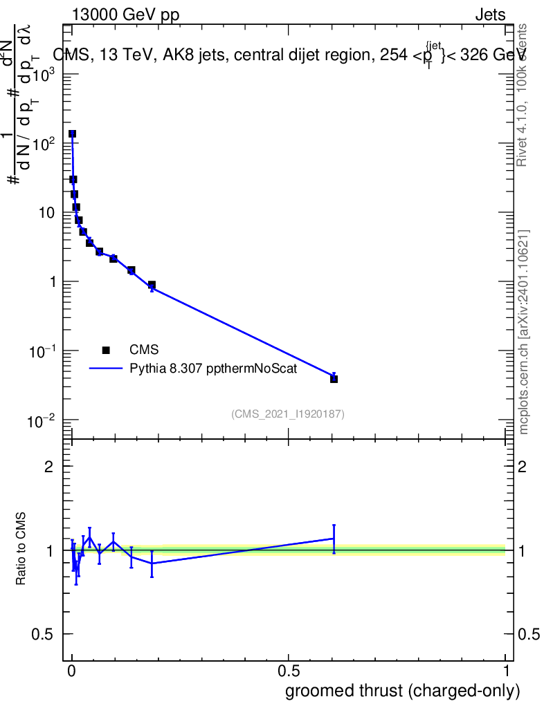 Lines: data, pythia8 8.307 ppthermNoScat |