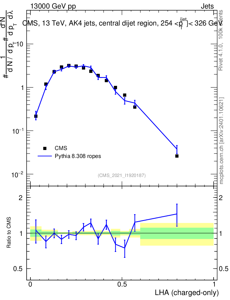 Lines: data, pythia8 8.308 ropes |