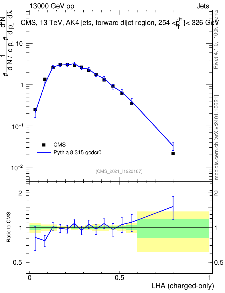 Lines: data, pythia8 8.315 qcdcr0 |