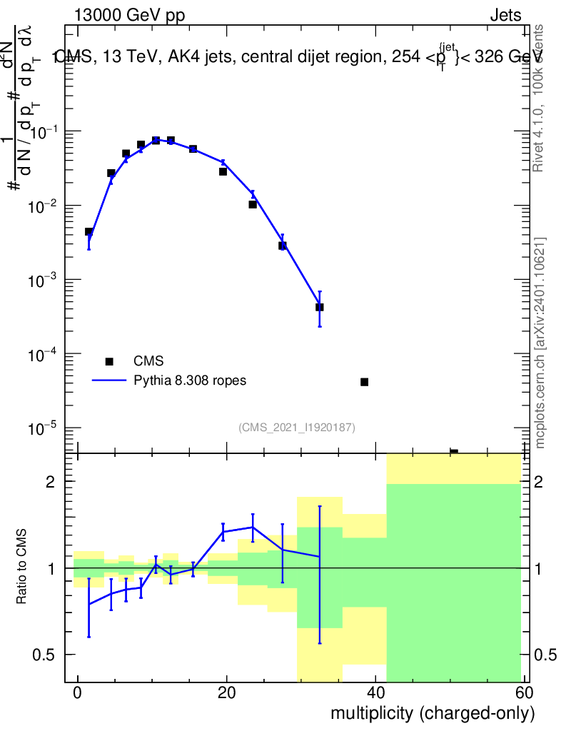 Lines: data, pythia8 8.308 ropes |