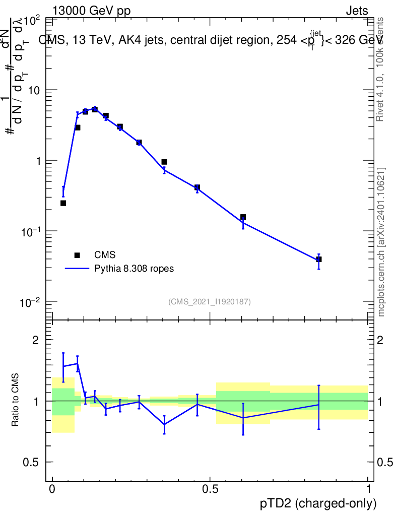 Lines: data, pythia8 8.308 ropes |