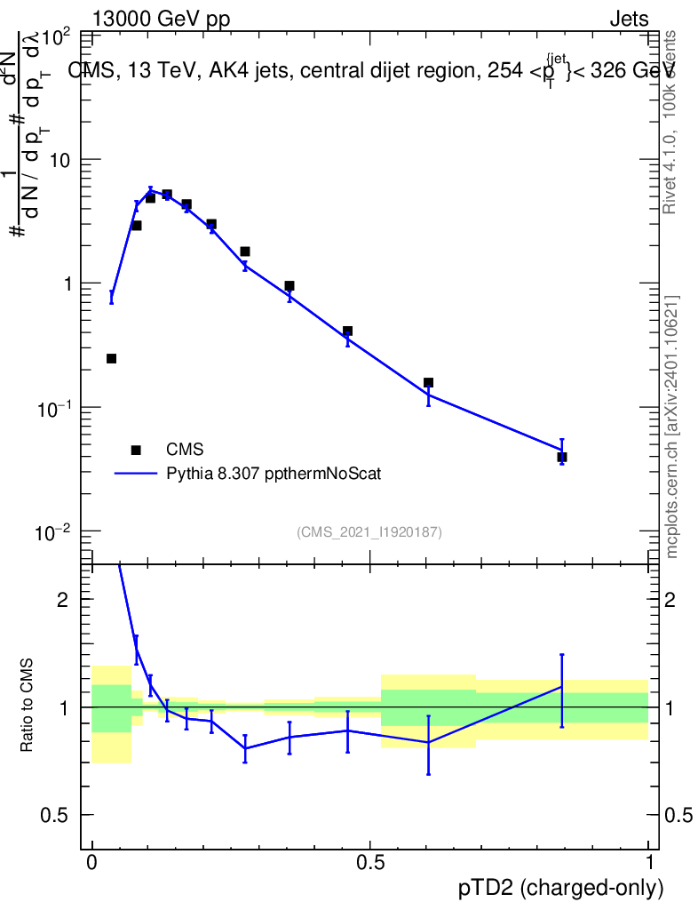 Lines: data, pythia8 8.307 ppthermNoScat |