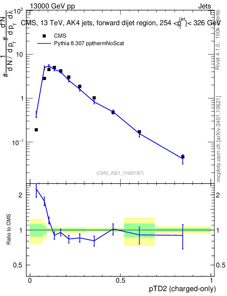 Lines: data, pythia8 8.307 ppthermNoScat |
