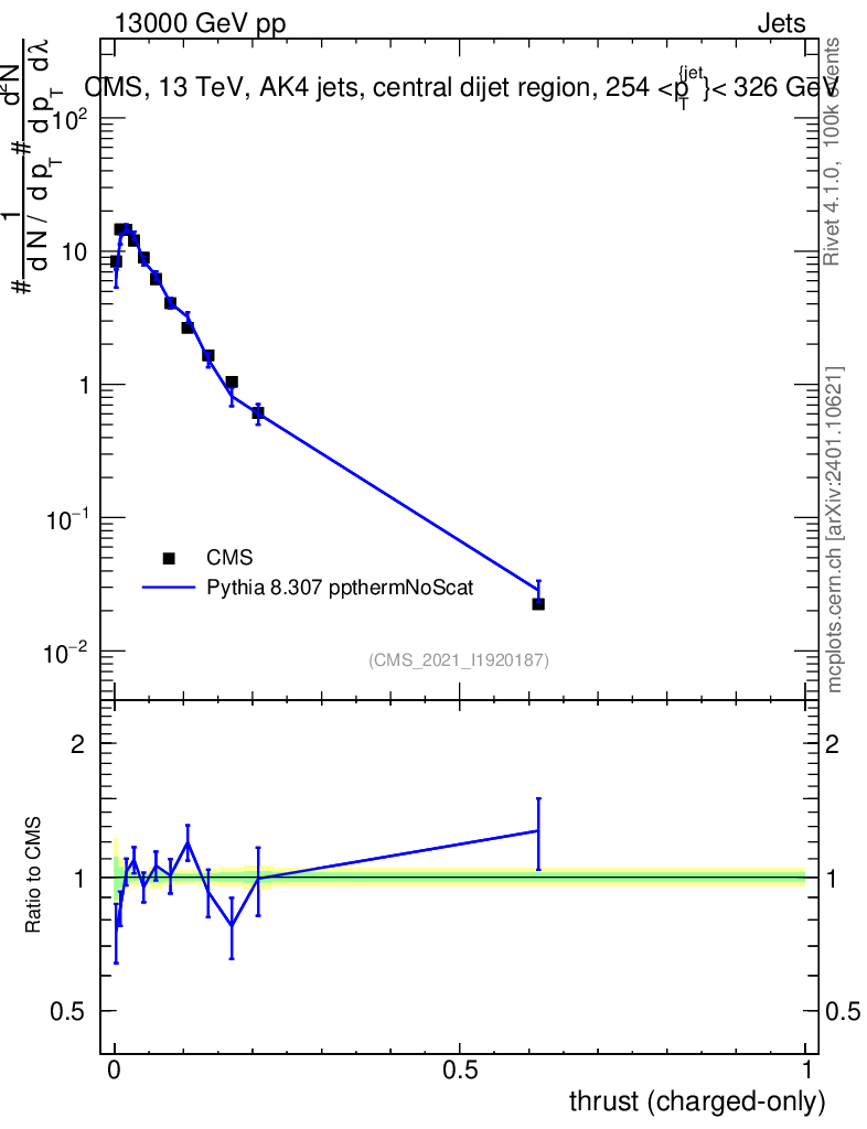 Lines: data, pythia8 8.307 ppthermNoScat |