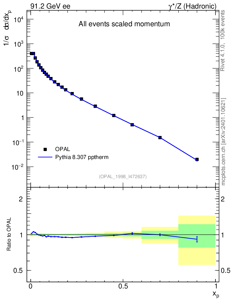 Lines: data, pythia8 8.307 pptherm |