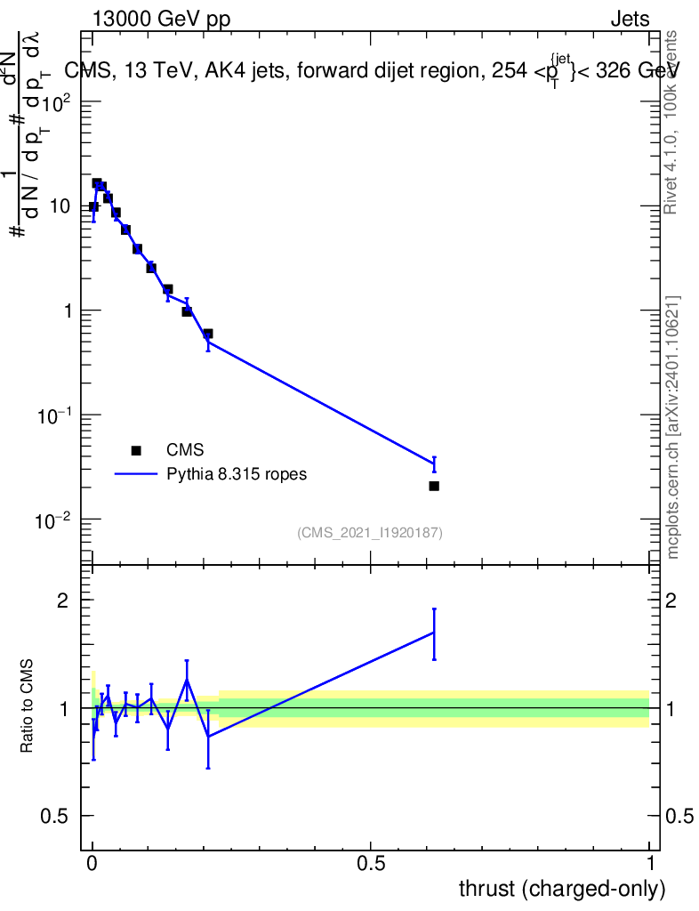 Lines: data, pythia8 8.315 ropes |