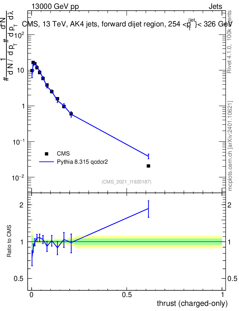 Lines: data, pythia8 8.315 qcdcr2 |
