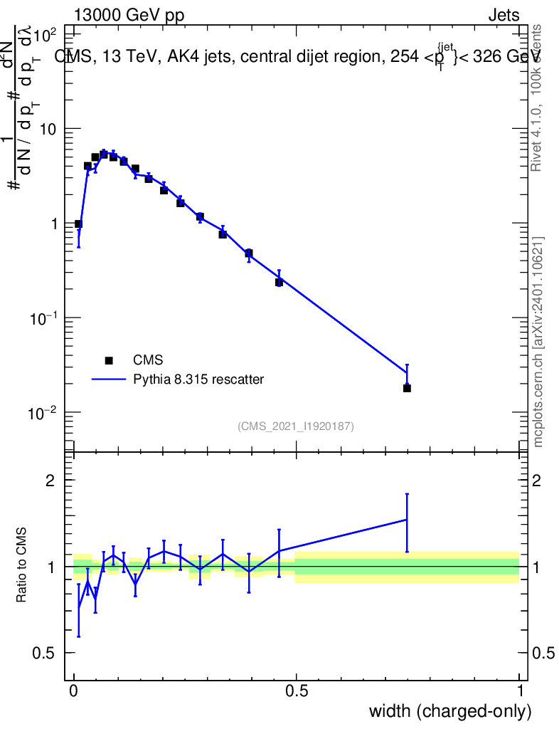 Lines: data, pythia8 8.315 rescatter |