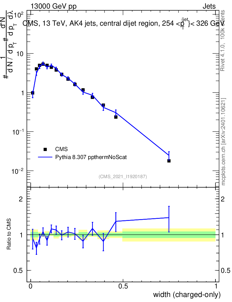 Lines: data, pythia8 8.307 ppthermNoScat |
