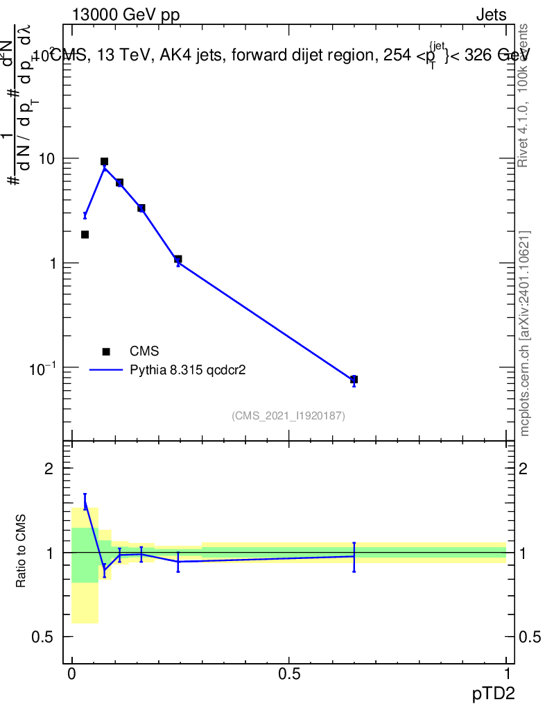 Lines: data, pythia8 8.315 qcdcr2 |