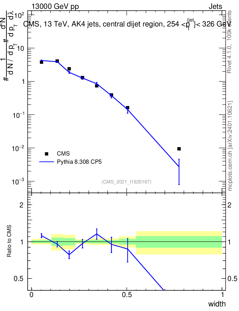 Lines: data, pythia8 8.308 CP5 |