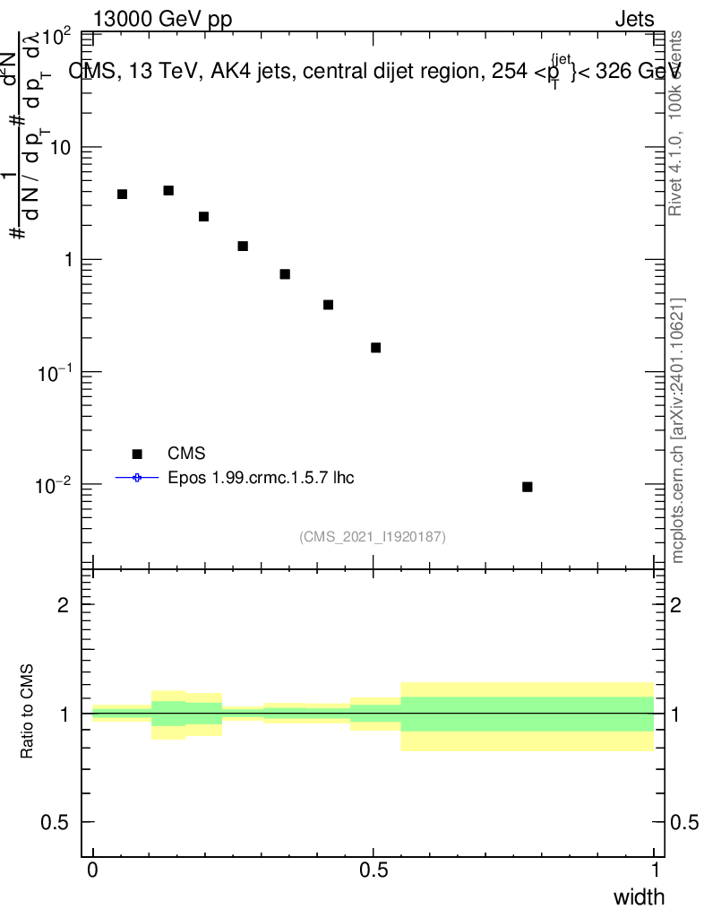 Plot of j.width in 13000 GeV pp collisions
