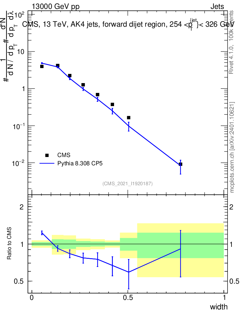 Lines: data, pythia8 8.308 CP5 |