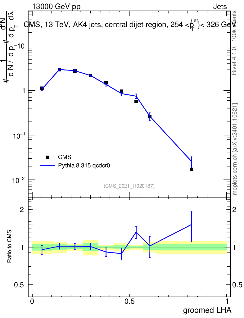 Lines: data, pythia8 8.315 qcdcr0 |