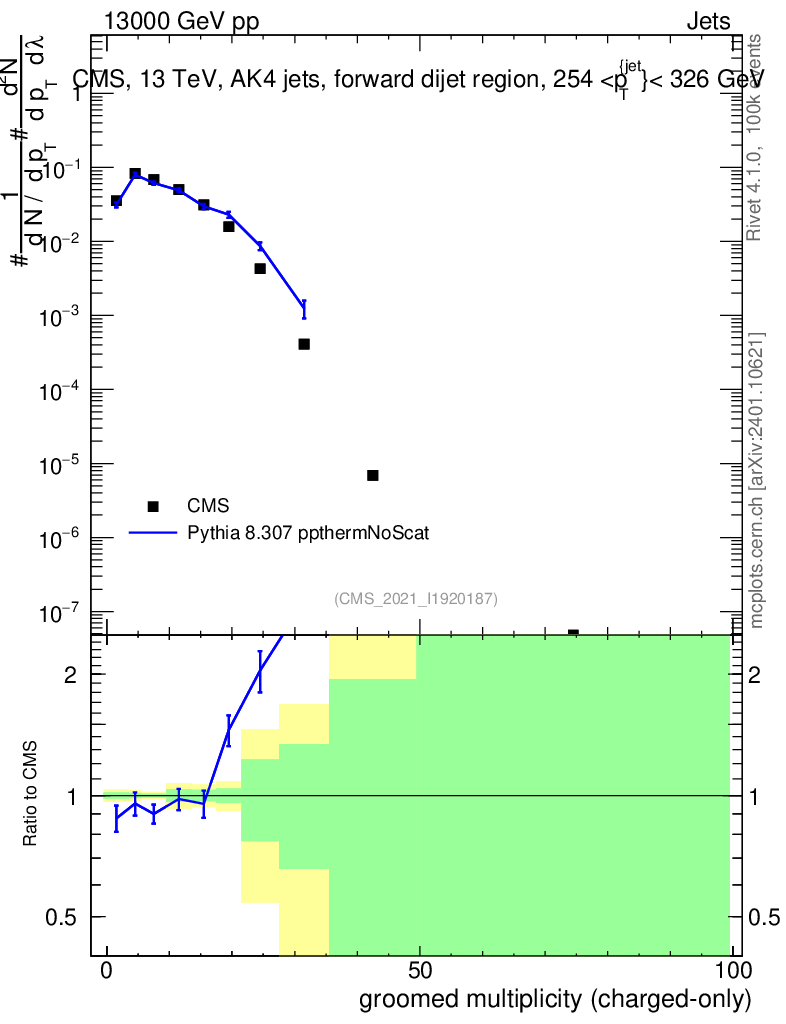 Lines: data, pythia8 8.307 ppthermNoScat |