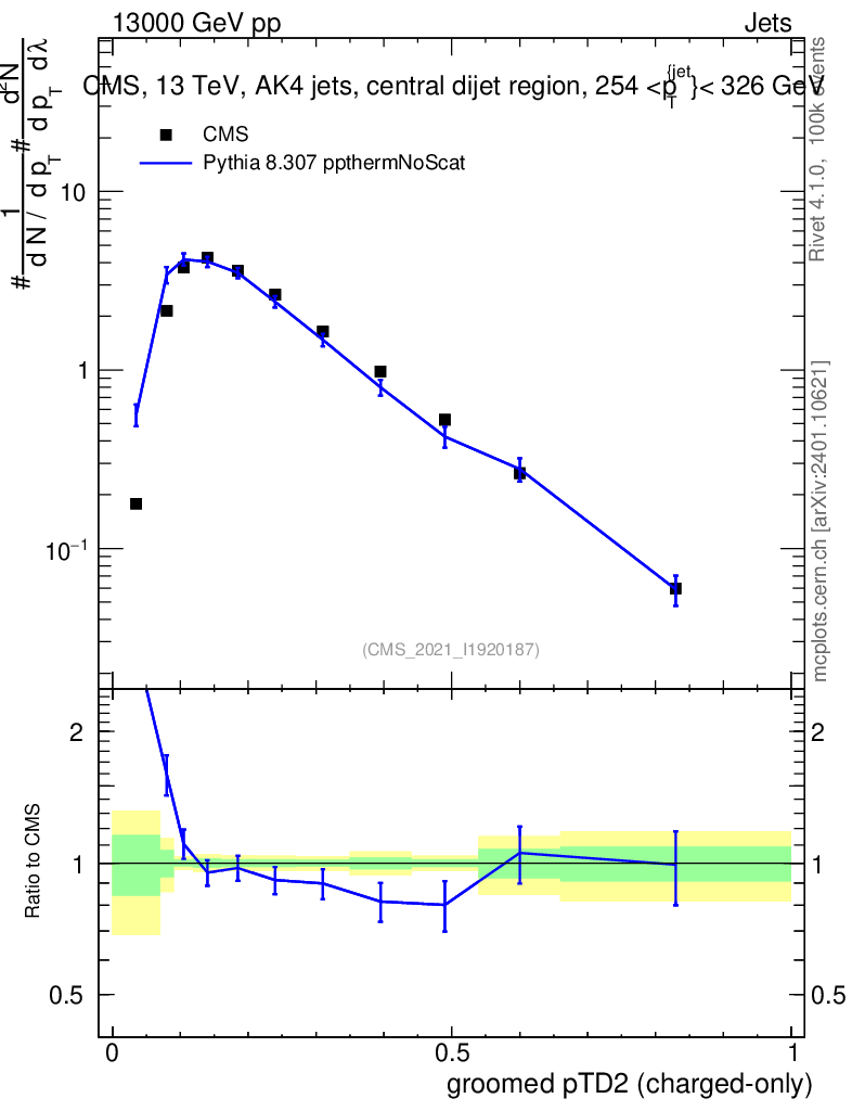Lines: data, pythia8 8.307 ppthermNoScat |