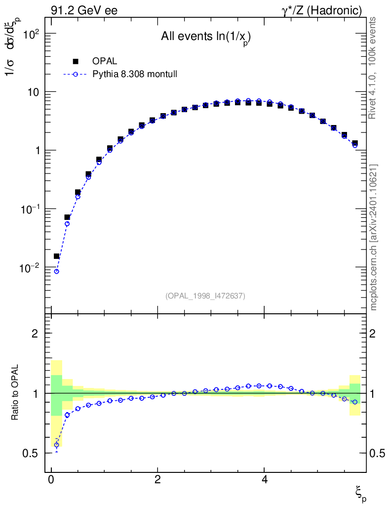 Lines: data, pythia8 8.308 montull |