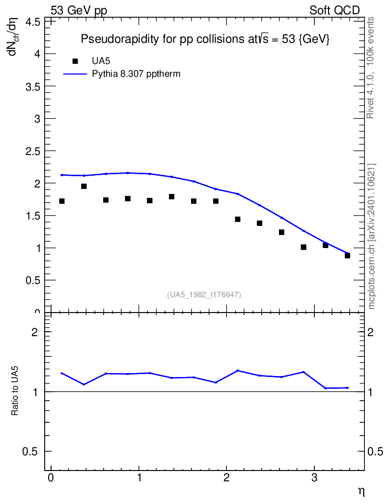 Lines: data, pythia8 8.307 pptherm |