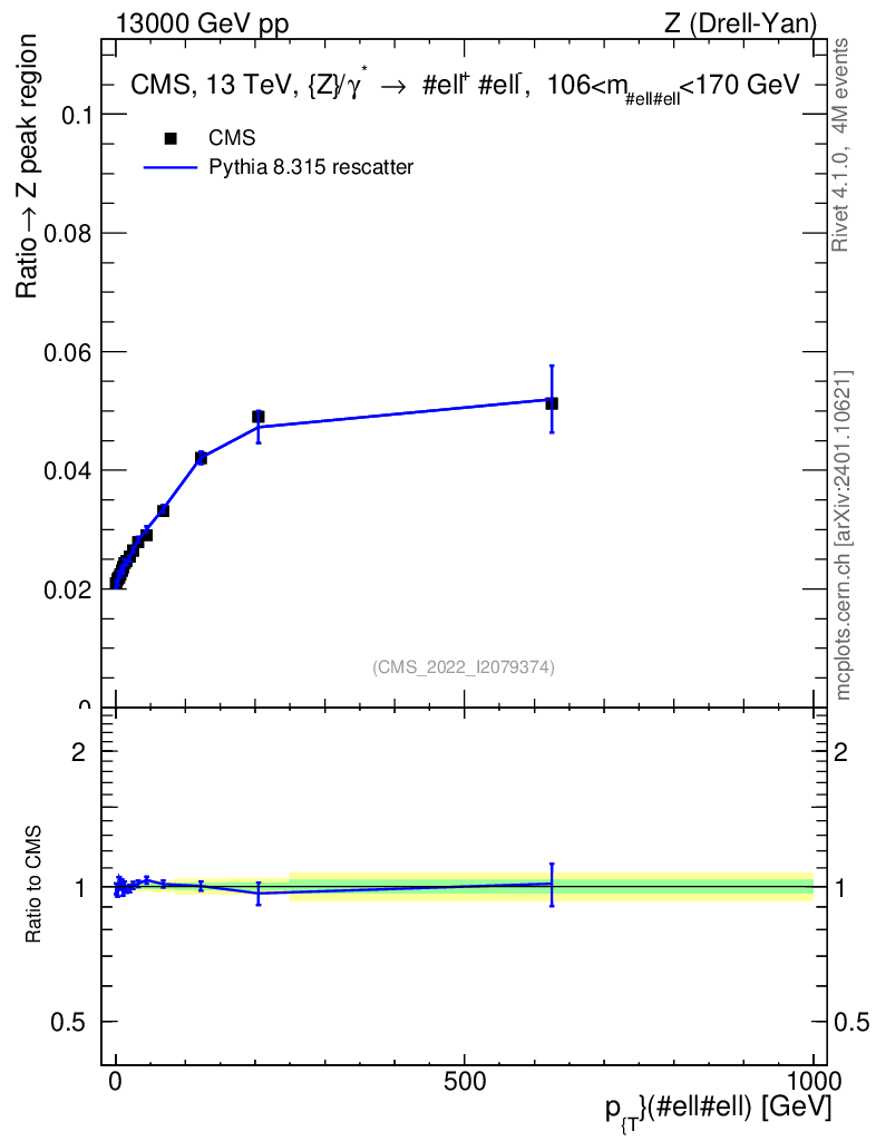 Lines: data, pythia8 8.315 rescatter |