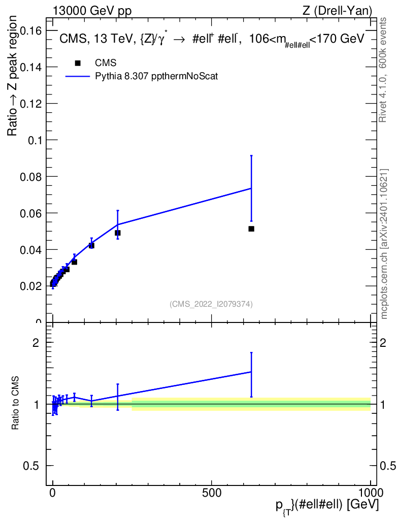 Lines: data, pythia8 8.307 ppthermNoScat |