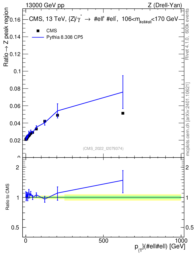 Lines: data, pythia8 8.308 CP5 |