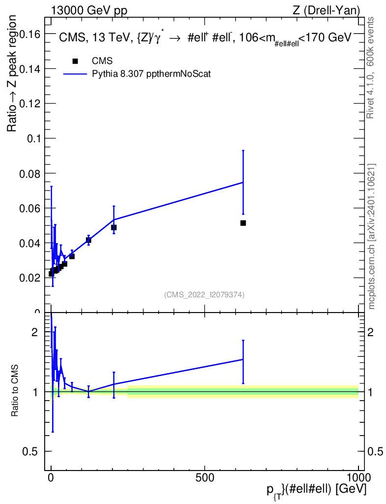 Lines: data, pythia8 8.307 ppthermNoScat |