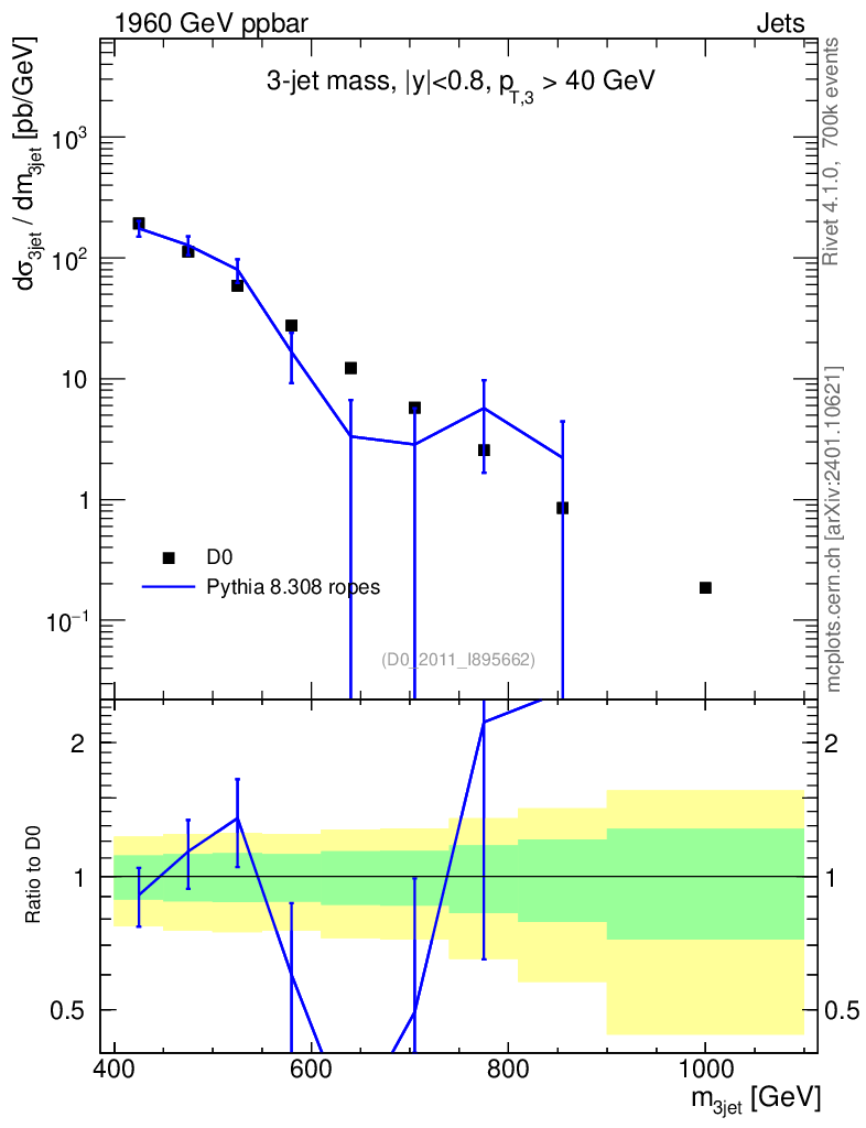 Lines: data, pythia8 8.308 ropes |
