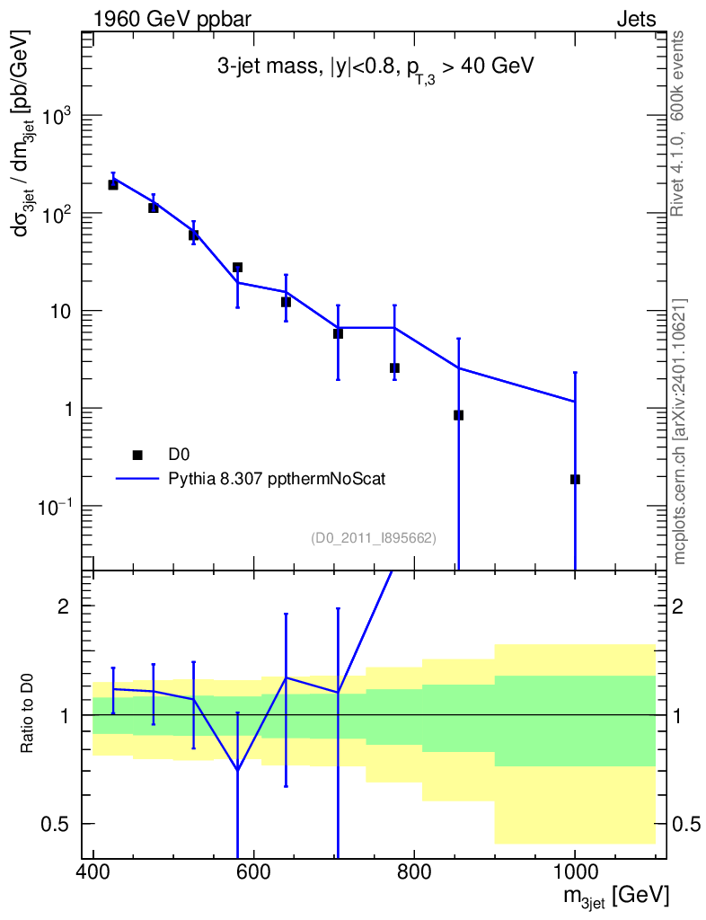 Lines: data, pythia8 8.307 ppthermNoScat |