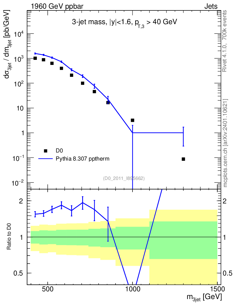 Lines: data, pythia8 8.307 pptherm |