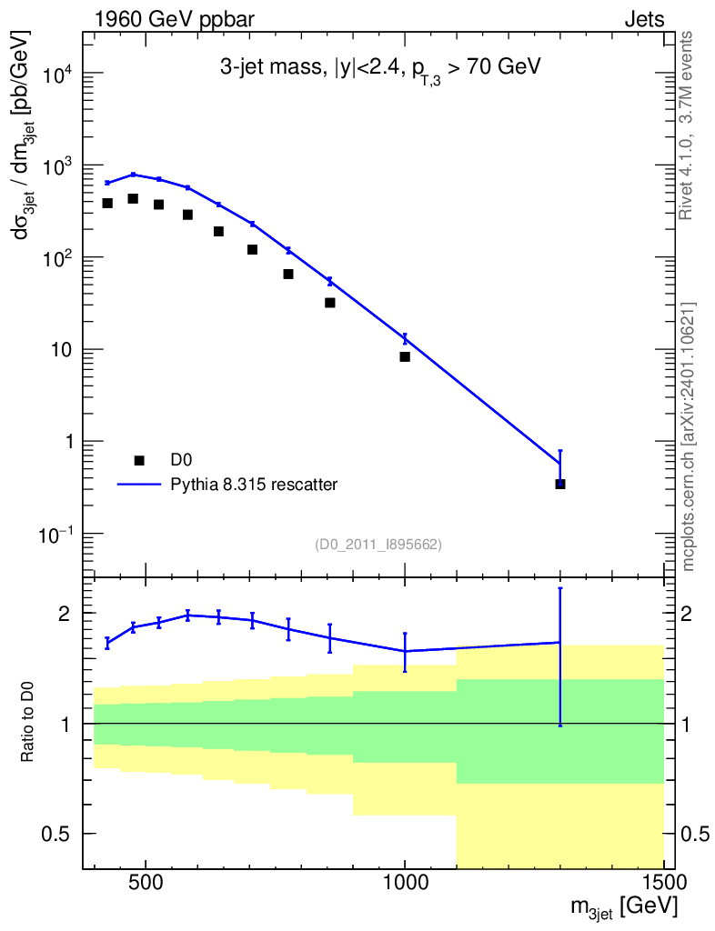 Lines: data, pythia8 8.315 rescatter |