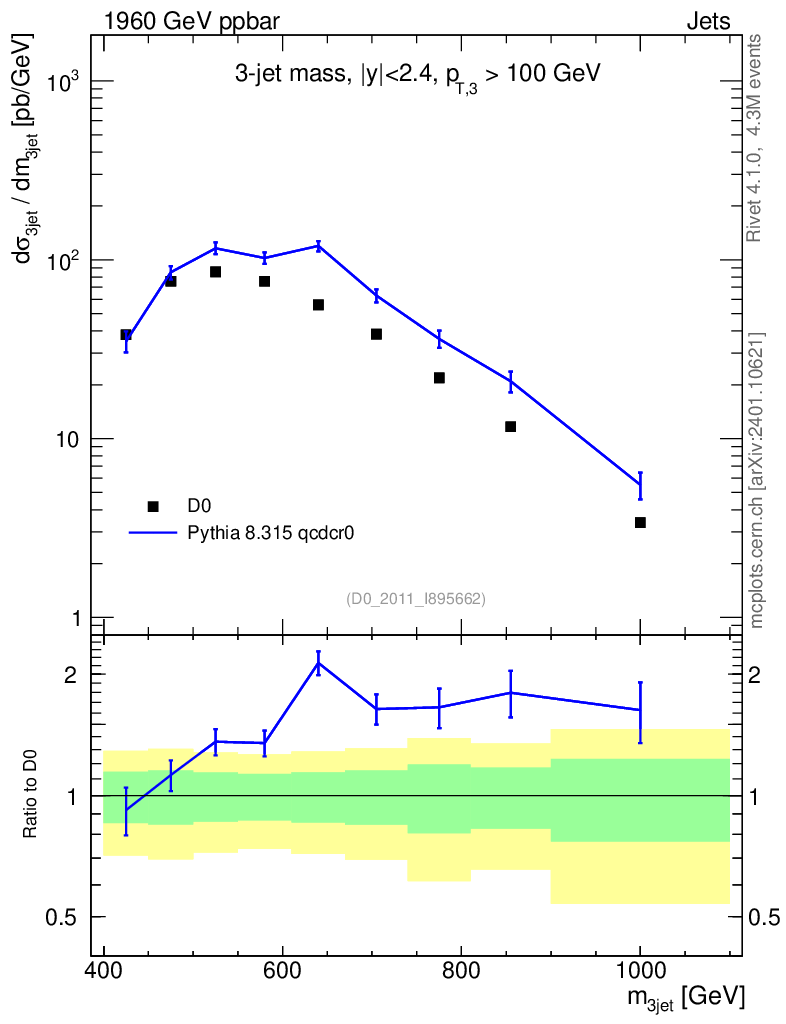 Lines: data, pythia8 8.315 qcdcr0 |
