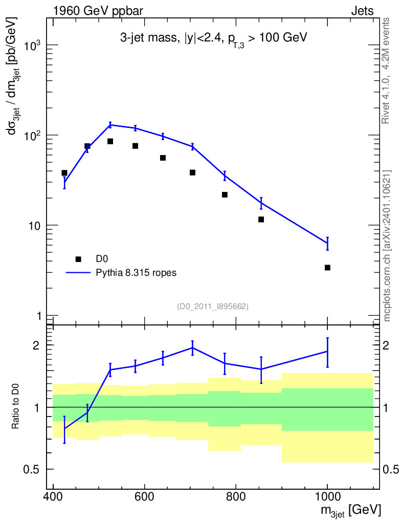 Lines: data, pythia8 8.315 ropes |