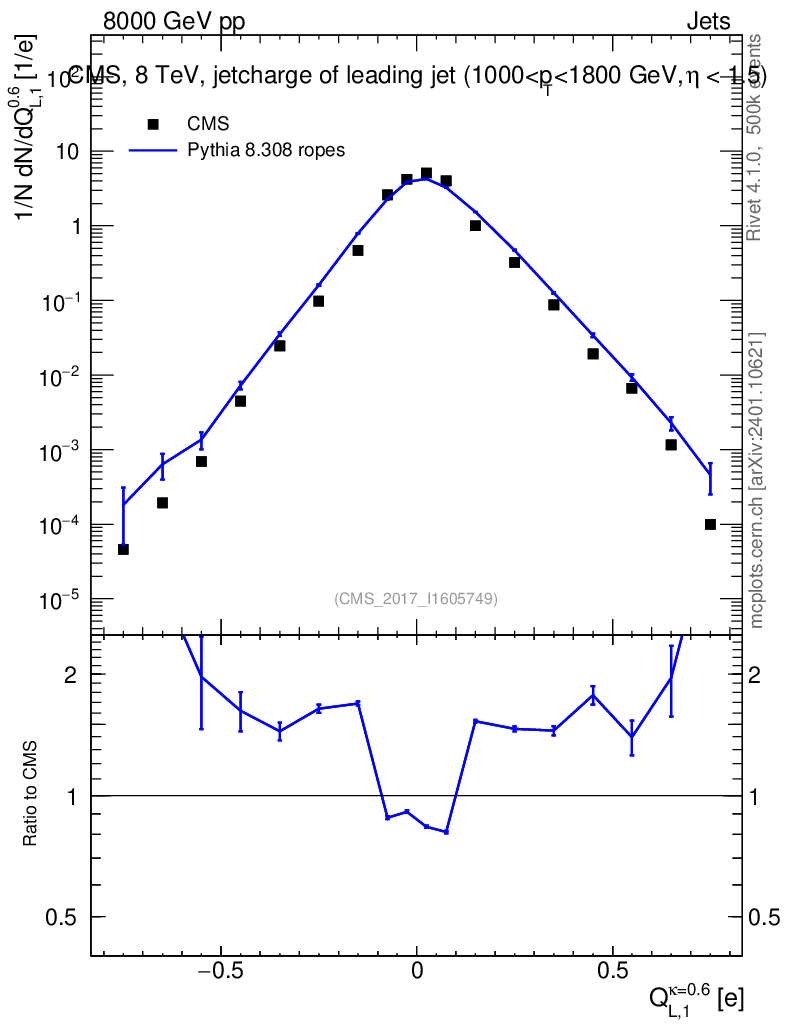 Lines: data, pythia8 8.308 ropes |