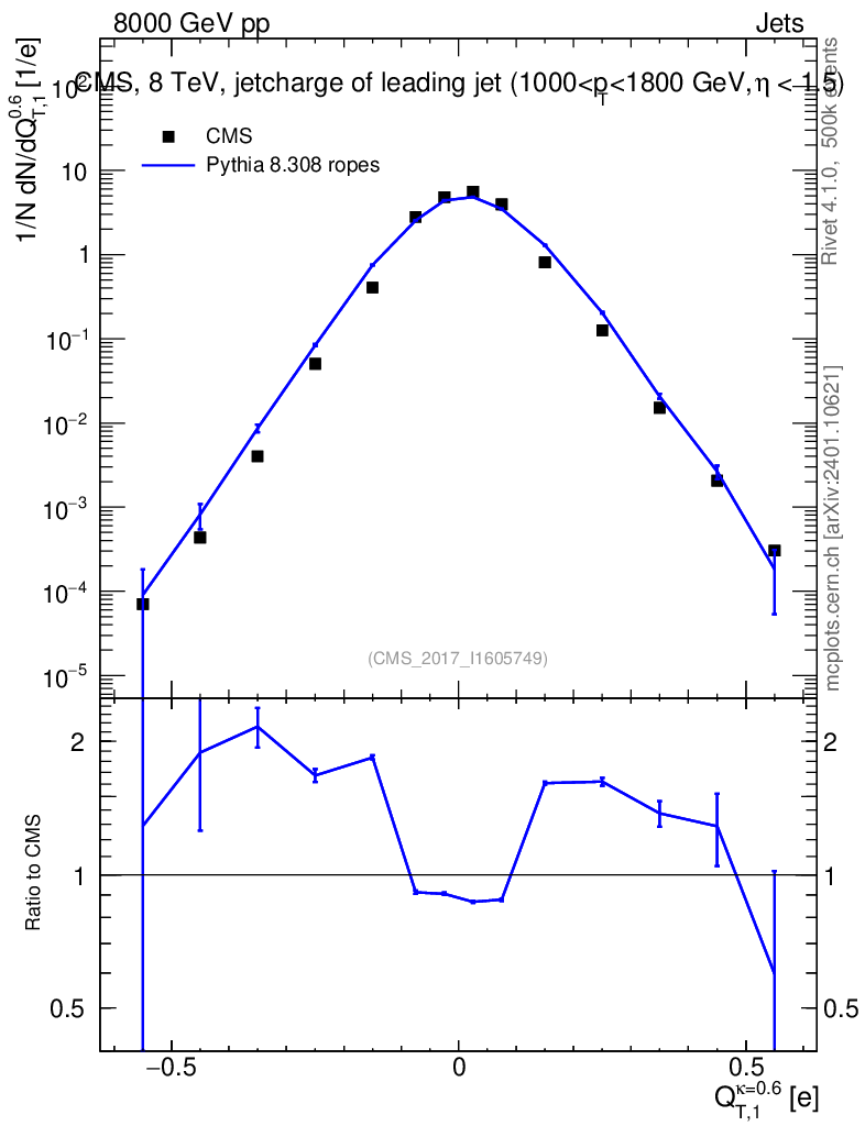 Lines: data, pythia8 8.308 ropes |