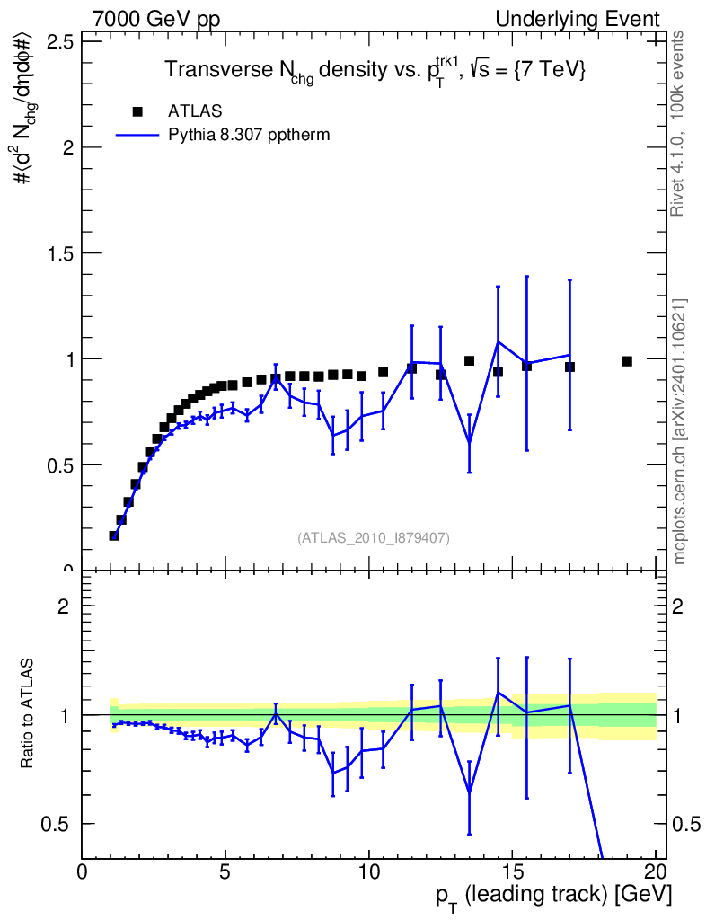Lines: data, pythia8 8.307 pptherm |
