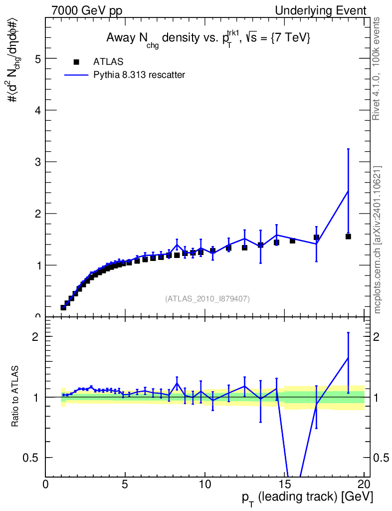 Lines: data, pythia8 8.313 rescatter |