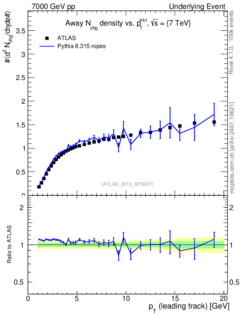 Lines: data, pythia8 8.315 ropes |
