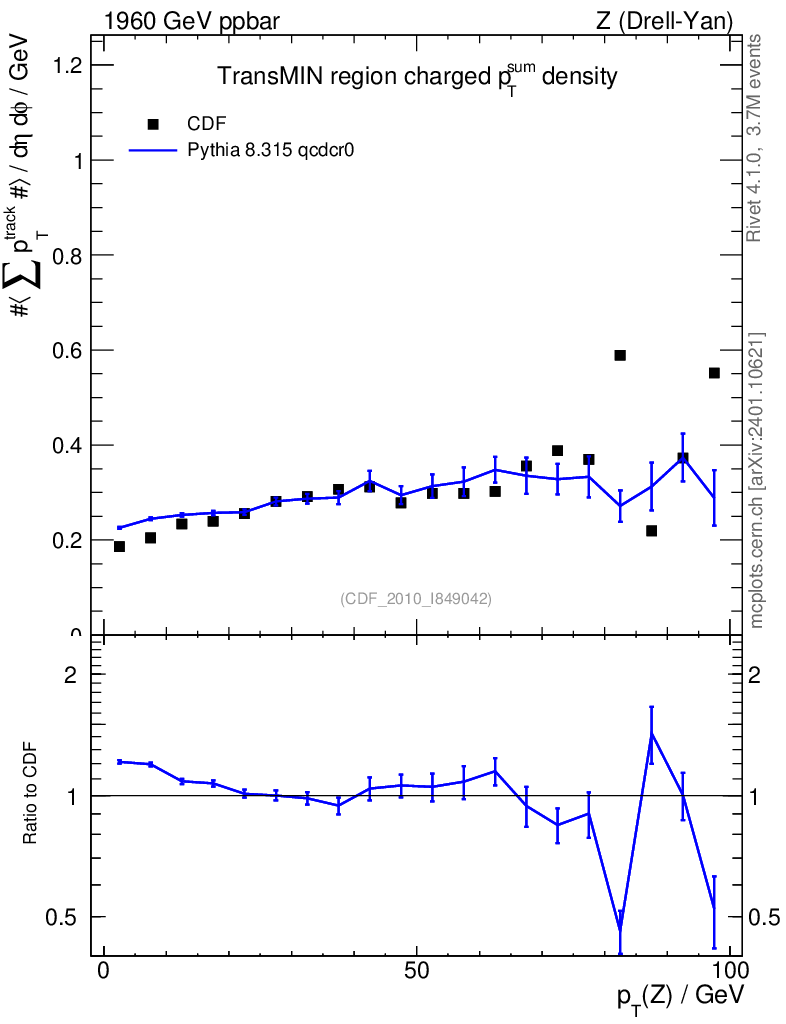 Lines: data, pythia8 8.315 qcdcr0 |