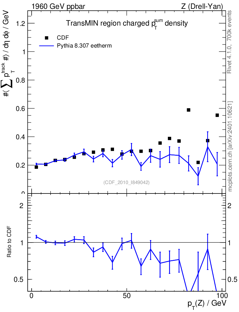 Lines: data, pythia8 8.307 eetherm |