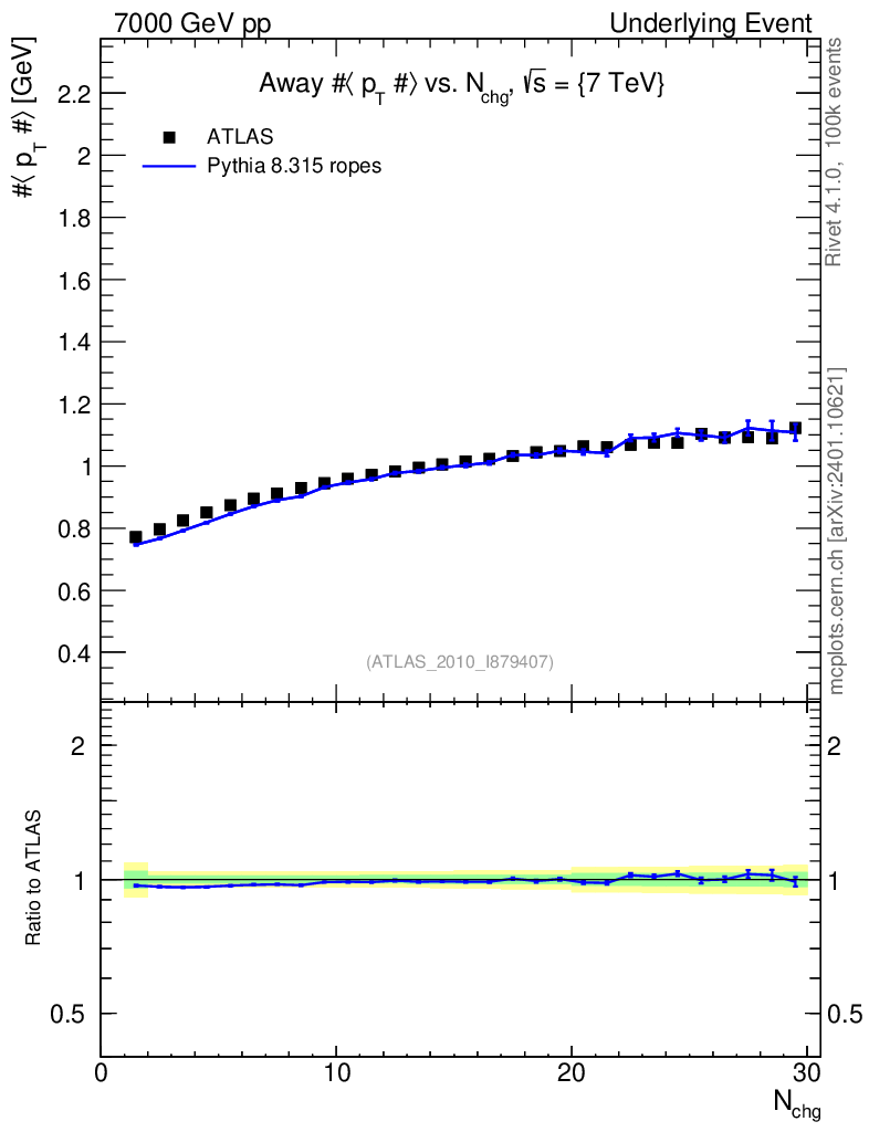 Lines: data, pythia8 8.315 ropes |