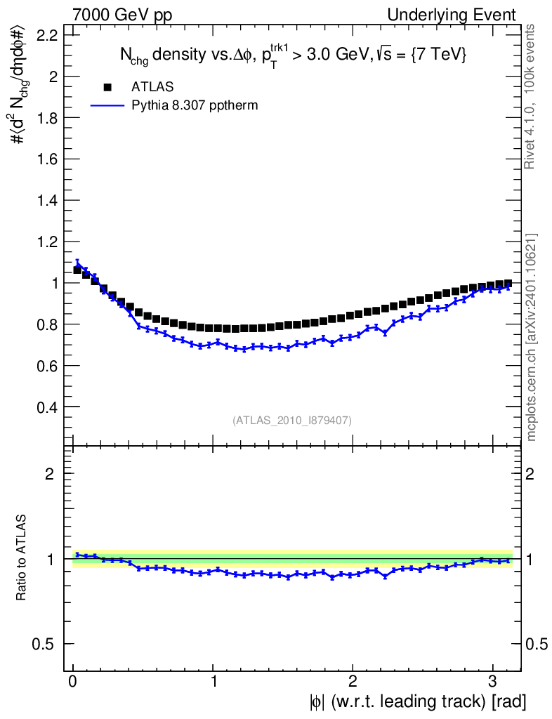 Lines: data, pythia8 8.307 pptherm |