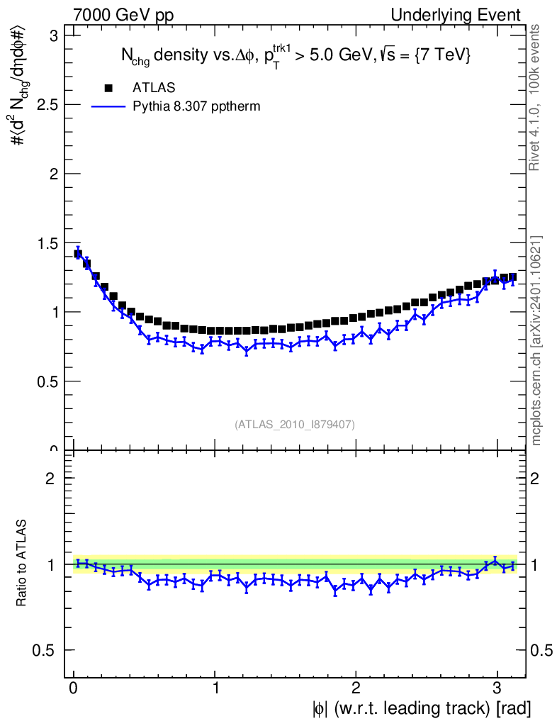 Lines: data, pythia8 8.307 pptherm |