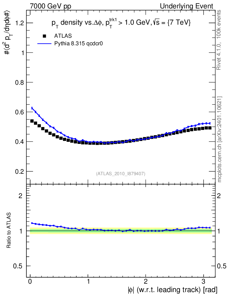 Lines: data, pythia8 8.315 qcdcr0 |